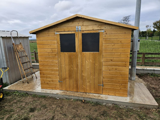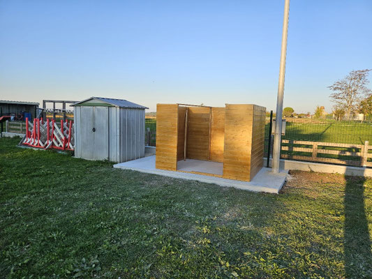 Un nouvel abri en bois a été construit sur le terrain afin de faciliter le rangement du matériel d’agility. Plus spacieux et plus pratique, il permettra de mieux protéger le matériel et de le garder à disposition pour les entraînements.